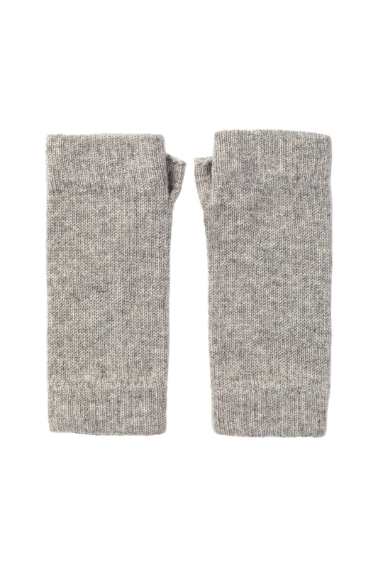 Ribbed Cashmere Light Grey Fingerless Gloves