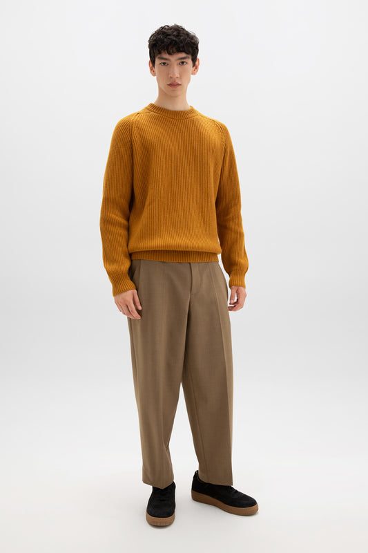 Dark Yellow Cashmere Ribbed Crew Neck Jumper