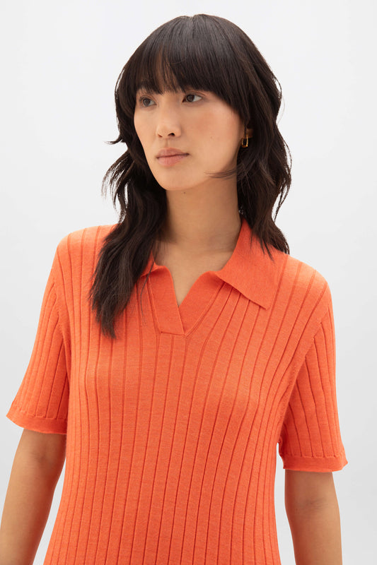 Superfine Merino Ribbed Orange Polo Shirt Dress