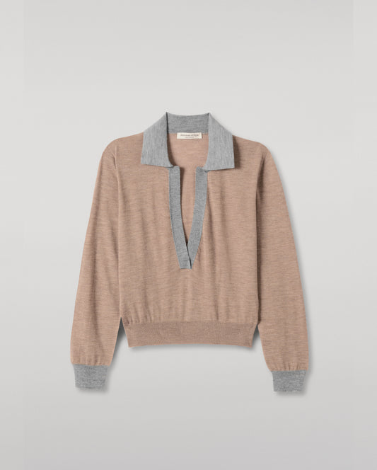 Coira Brown & Dark Grey Superfine Cashmere Polo Shirt