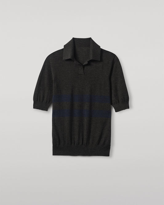 Coira Dark Grey & Navy Superfine Cashmere Polo Shirt