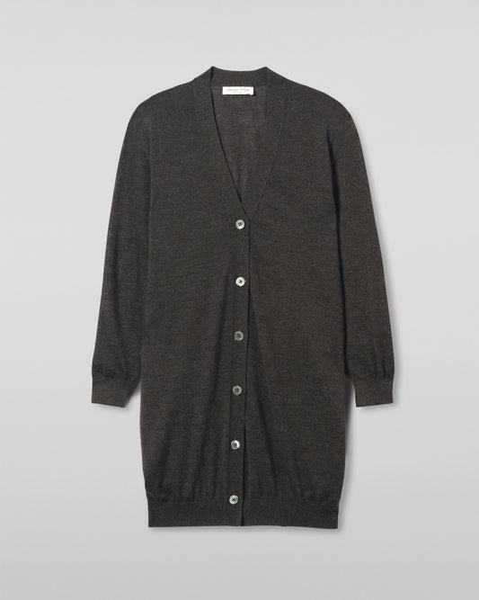 Elise Dark Grey Long Superfine Cashmere Cardigan