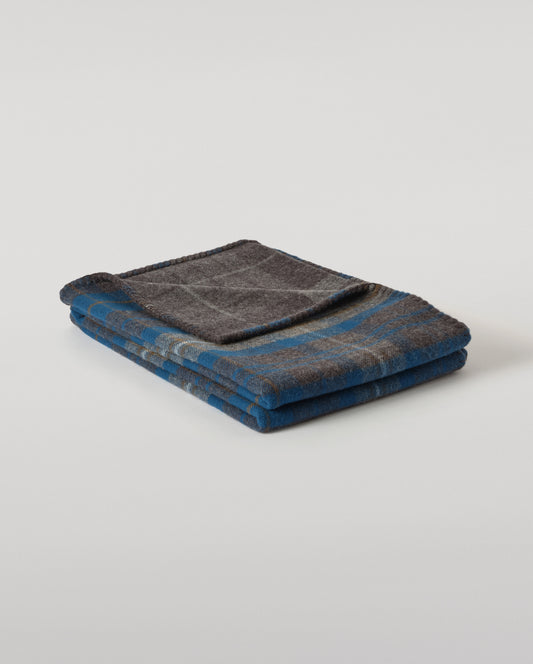 Double Face Wool Throw in Heather Blue Check & Brown Windowpane