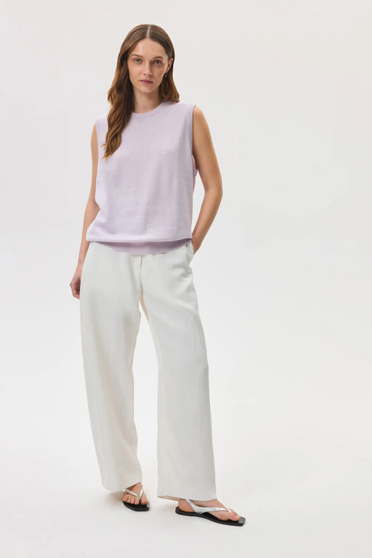 Ribbed Merino Dark Navy Wide Leg Trousers