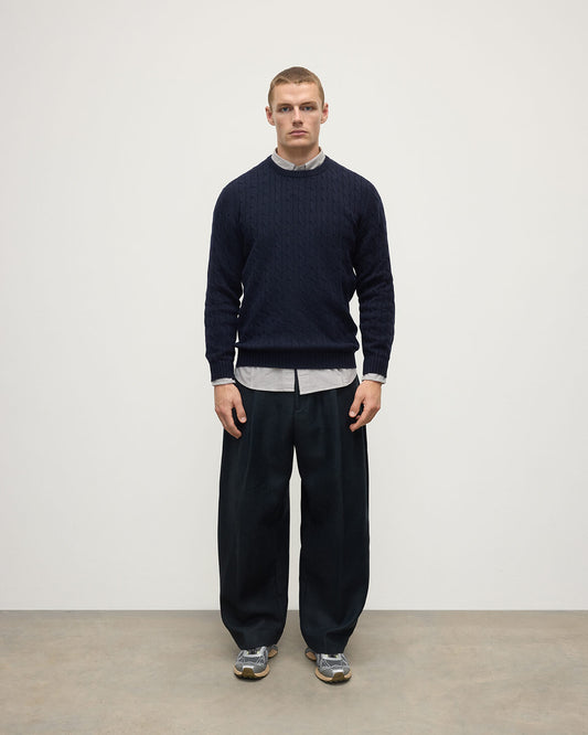Cable Knit Dark Navy Cashmere Jumper