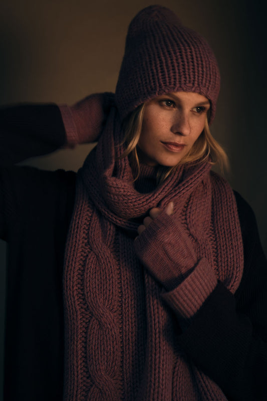 Cable Cashmere Natural Scarf & Beanie Gift Set