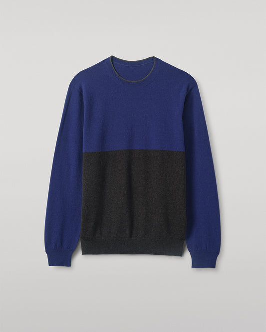 シェーデッドグレー&ブルーのカラーブロックカシミアジャンパー