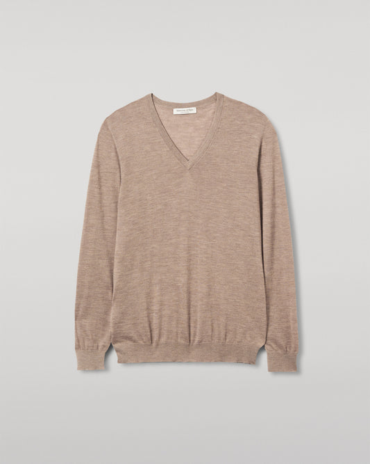 フィン ライトブラウン Vネック スーパーファインカシミア ジャンパー
