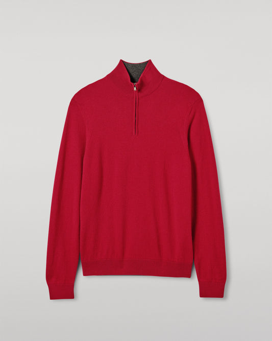 ロリー レッド&グレー クラシック カシミア コントラスト ジップネック ジャンパー