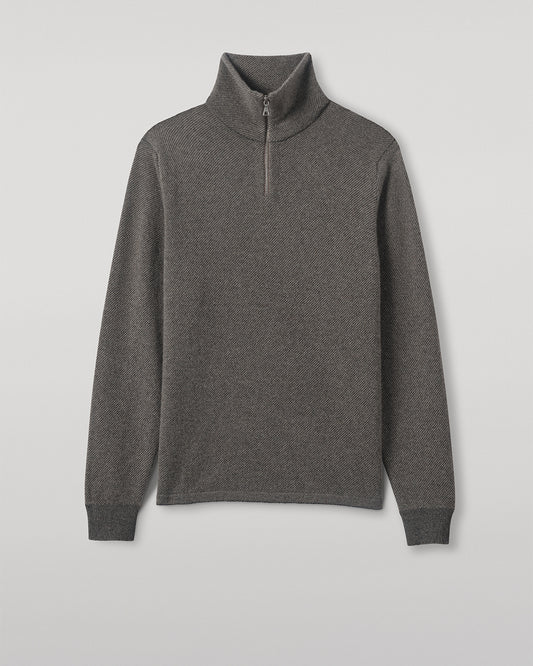 トゥイル グレー&ブラウン カシミア ハーフジップ ジャンパー