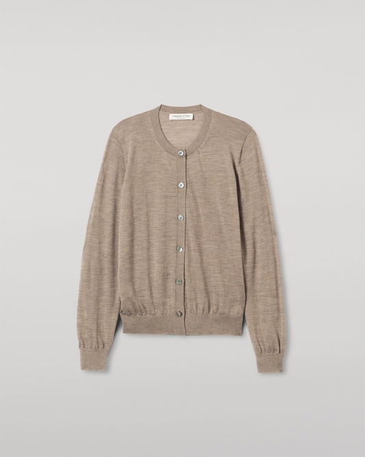 パイオニア ライトブラウン グレー ショールカラー カシミア カーディガン