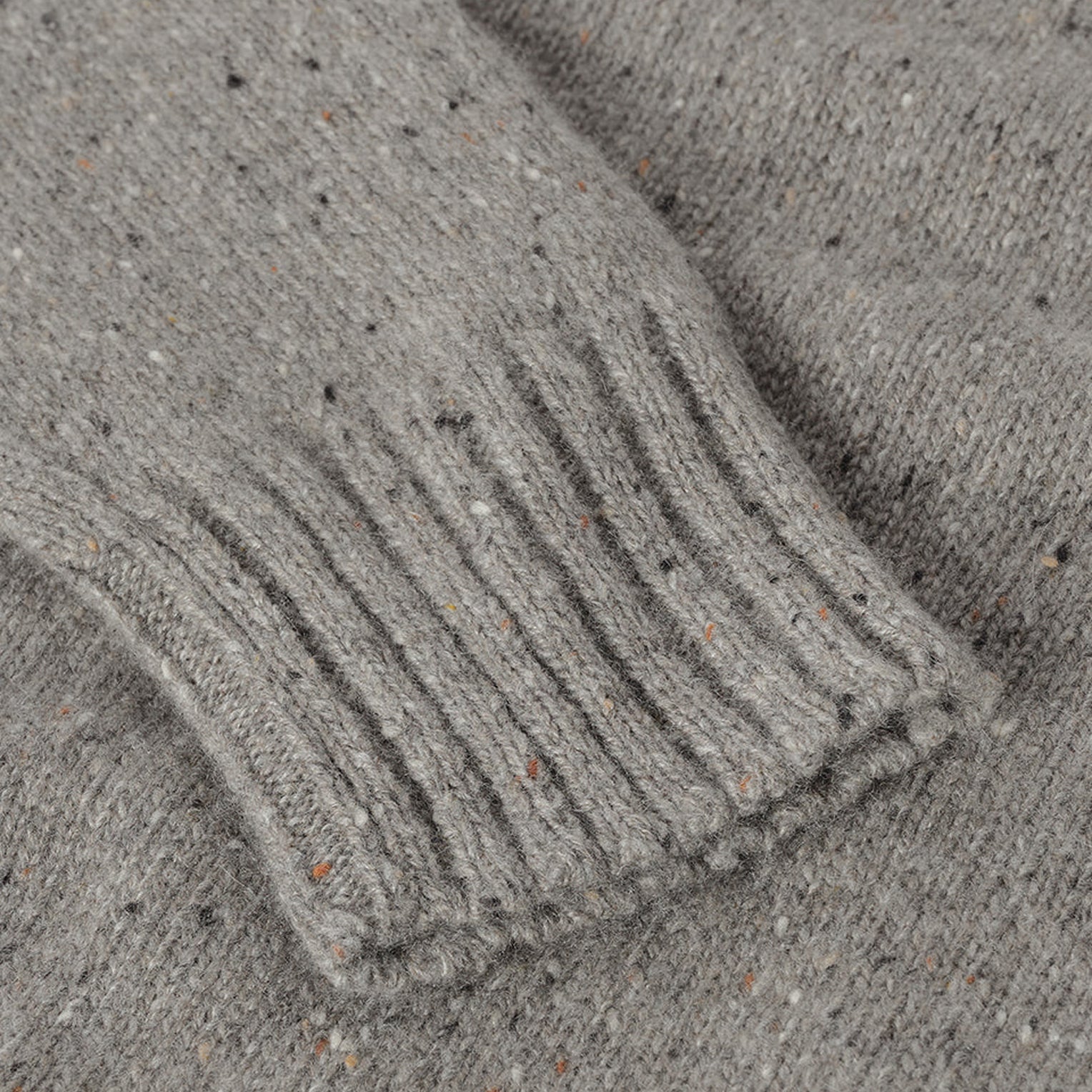 ドニガル特有の斑点は、紡糸前に染色されたカシミヤ繊維を丁寧にブレンドすることで、繊細でありながらも意図的な仕上がりとなっています。熟練のニッターたちが、精密さと細心の注意を払いながら製品を作り、見た目だけでなく着心地も素晴らしいニットウェアを生み出しています。