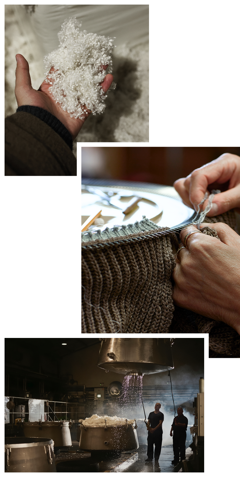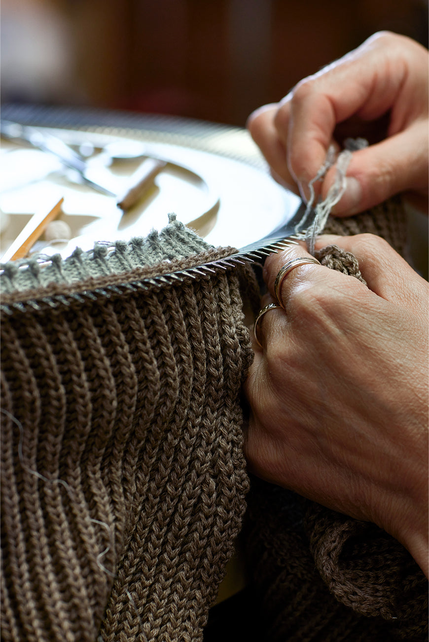 ドニガル・カシミアの製品はすべて、スコットランドでデザイン・製造され、何世代にもわたって受け継がれてきた伝統的な技法を用いています。エルギンとホーイックにある自社工場で紡績、編み、仕上げまでを一貫して行っており、製品の品質、持続可能性、そして原産地を徹底的に管理しています。