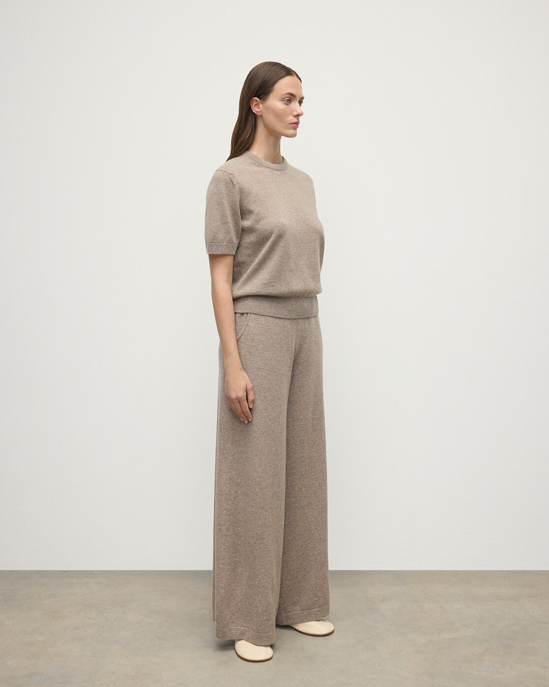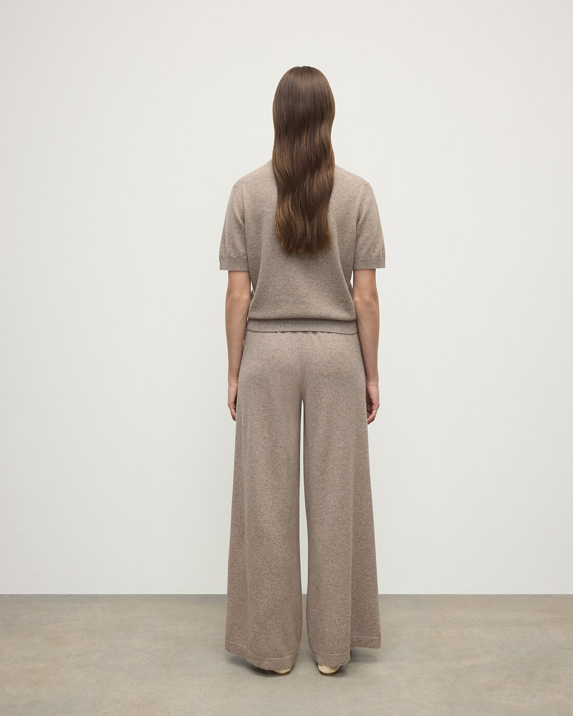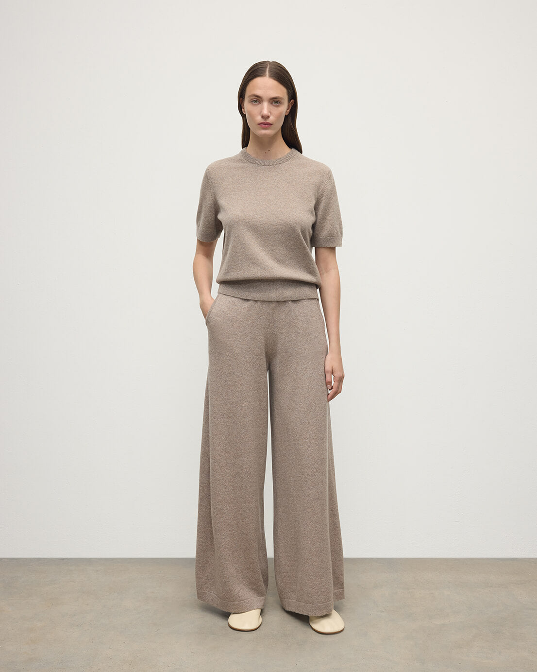 オーバーサイズのシルエットとワイドレッグが、アッシュカラーのスラウチパンツに現代的な雰囲気を演出します。ソフトでふっくらとしたパフォーマンスカシミアが、スラウチパンツにプレミアムな肌触りと形状保持力を与えます。ローライズシルエットに内ポケットを装備。当社のアイコン的なカシミアフーディと合わせて、旅行やリラックスタイムに最適です。
