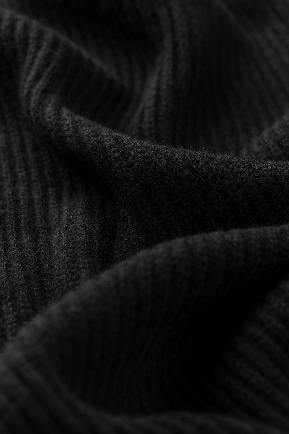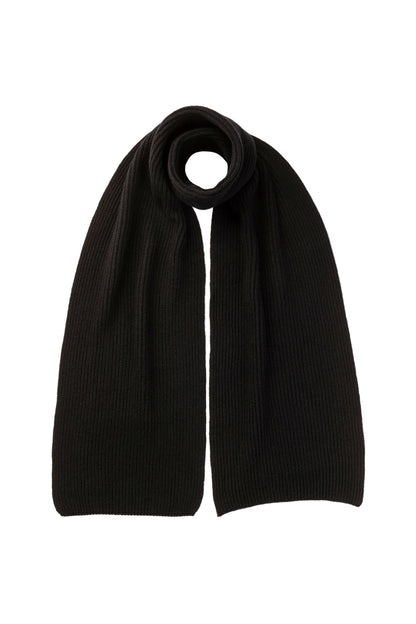 時代を超えたリブ編みの美しさを備えたクラシックなブラックのユニセックス スカーフ。 最高級のカシミア繊維を使用し、スコットランド国境の自社工場で編み上げています。 何にでも合わせやすい一枚。