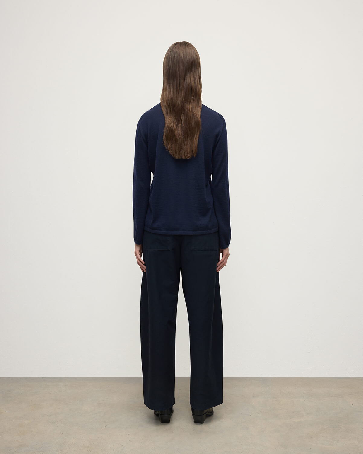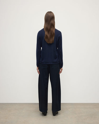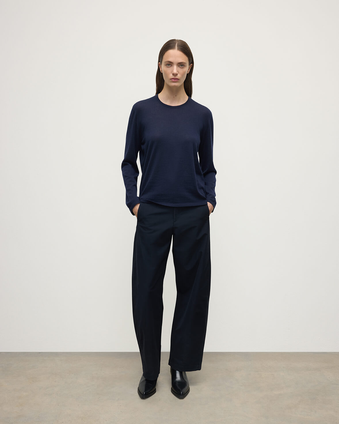 このリラックスしたジャージー素材のアイテムは、驚くほど軽量な超細番手のカシミアで仕立てられています。緩やかなヘムがデザインを完成させます。