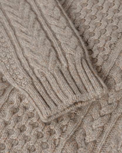 Knitted in our Hawick Mill, our Aran is made from an 8-ply yarn of 100% fine cashmere, providing exceptional comfort and warmth. It's natural Ash Brown hue can be layered with outerwear throughout winter and worn by itself through the spring.