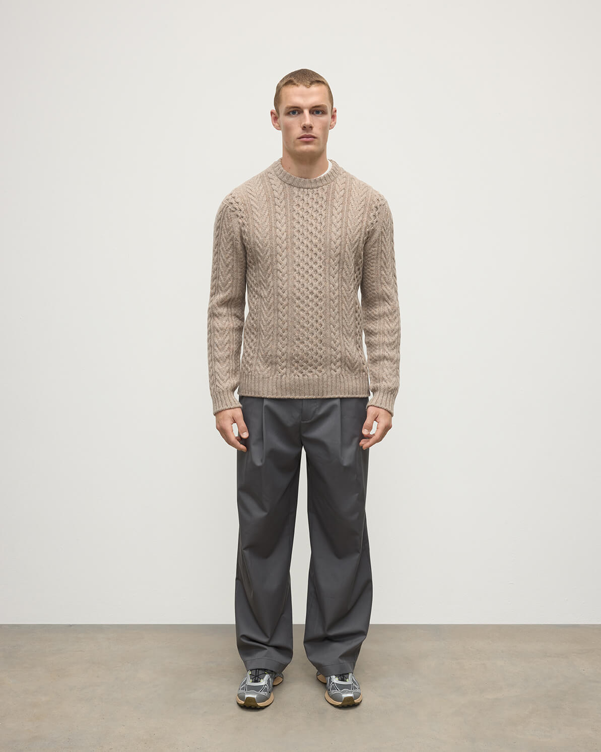 One of our year-round men's classics, the Aran Cable Knit is a staple of knitwear heritage with a traditional textured pattern to the body and a ribbed trim to the hem, cuffs and crew neck.