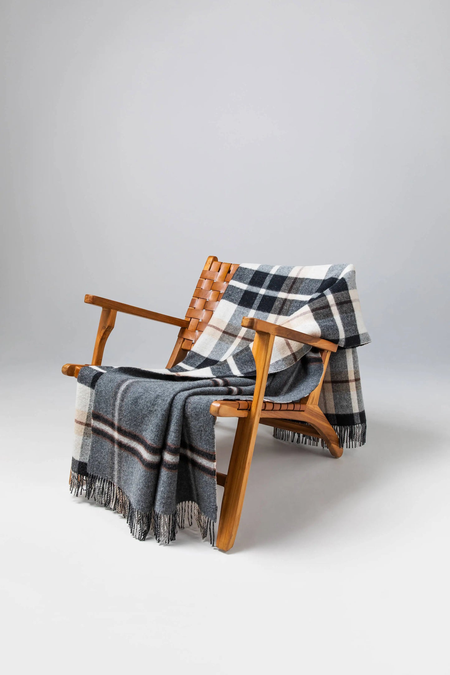 This iconic piece is made from highest quality lambswool fibres, woven in Elgin, Scotland – ensuring a level of quality that is unparalleled. It features two complementing designs, in shades of black, beige & brown, offering a traditional and stylish look that mirrors the colours of the Scottish countryside.