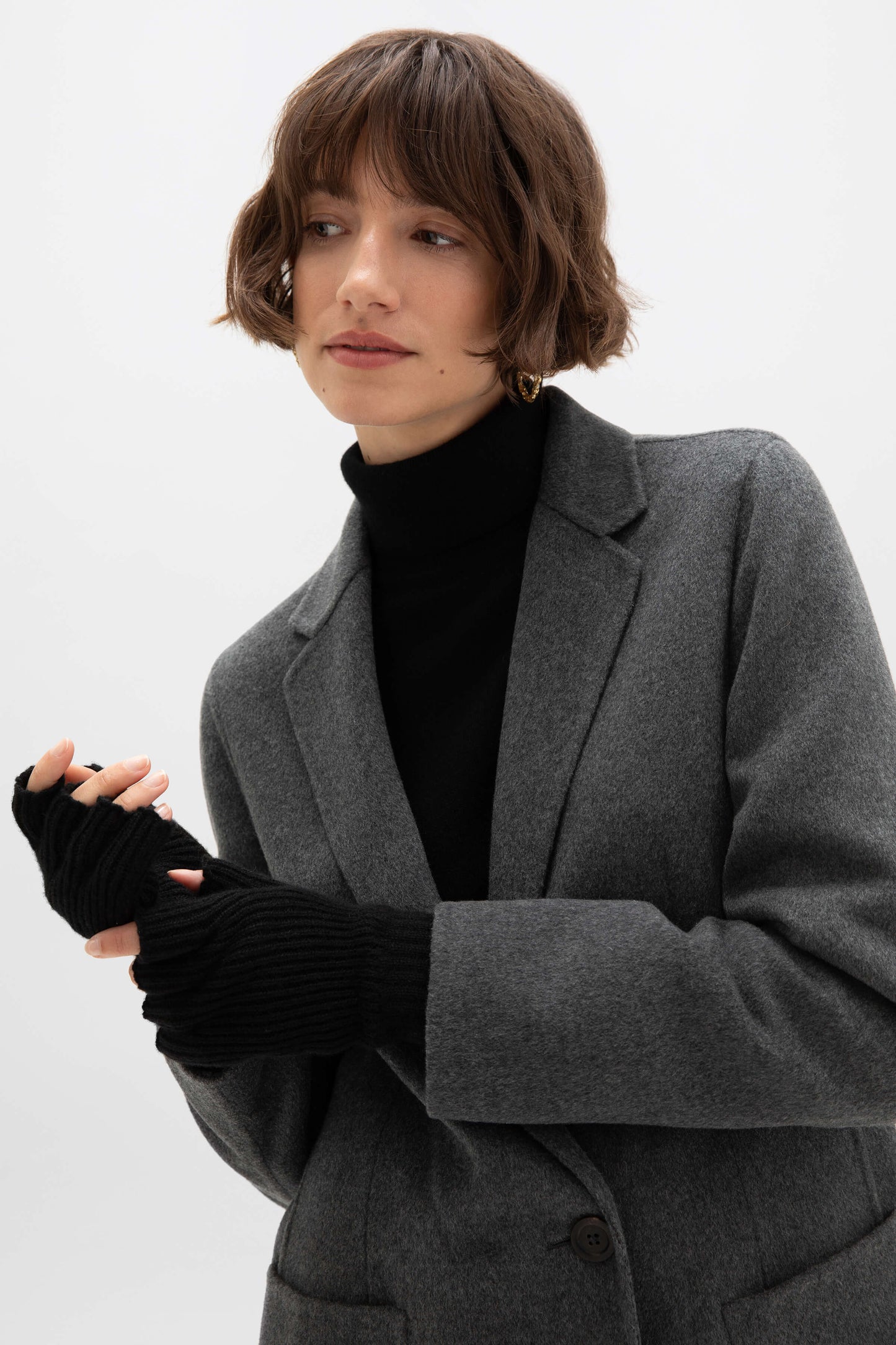 A classic ribbed pattern in must-have black. Fingerless gloves provide warmth without hindering dexterity. Versatile, stylish, soft and warm, with matching beanies and scarves available.