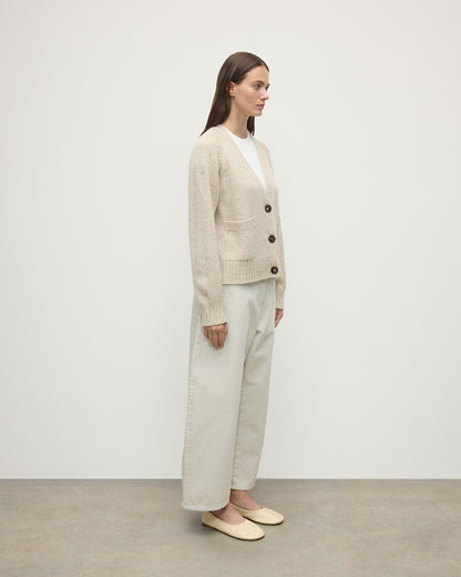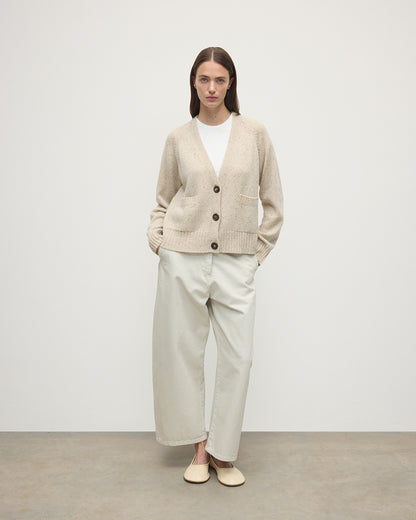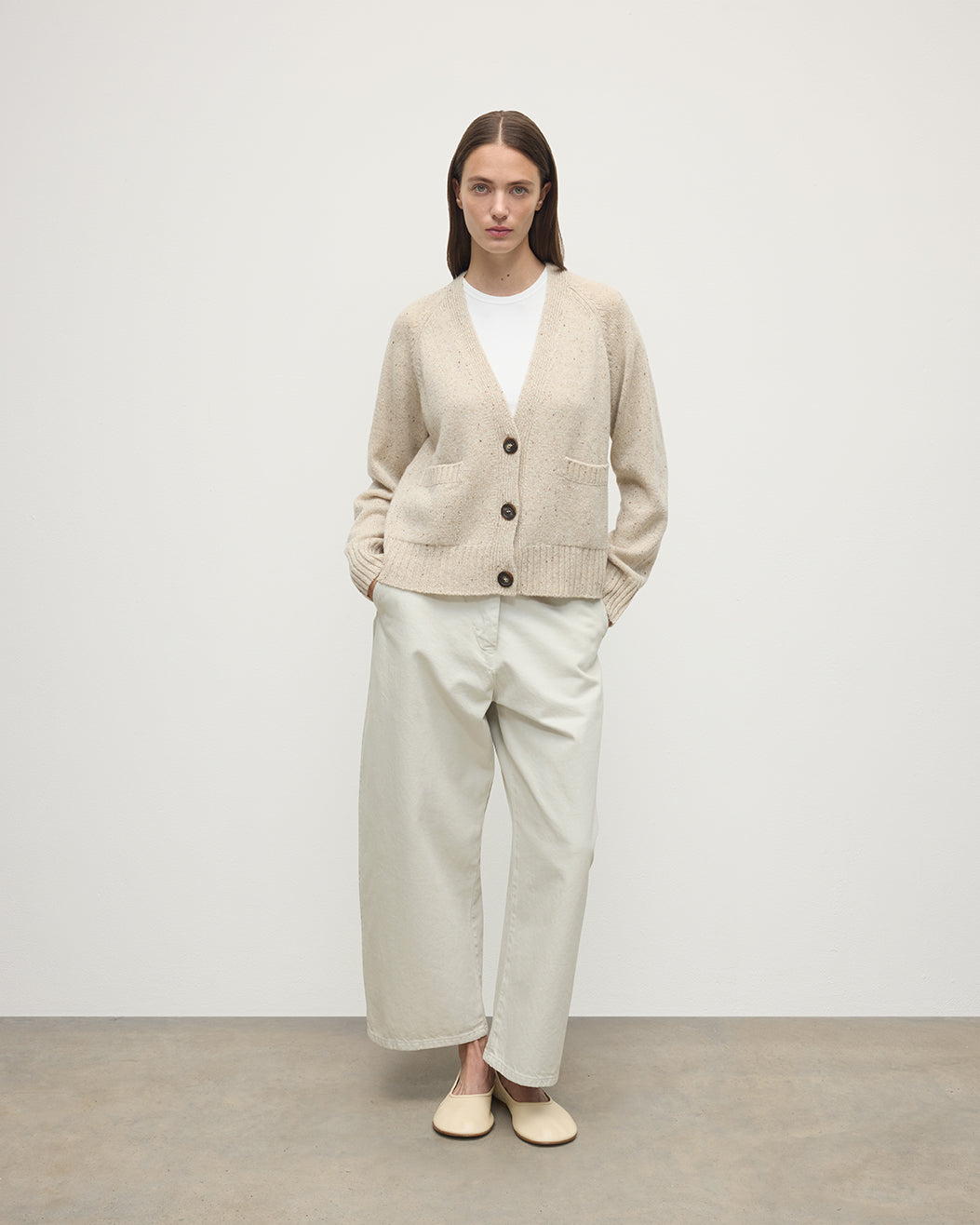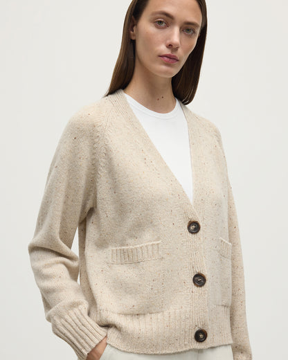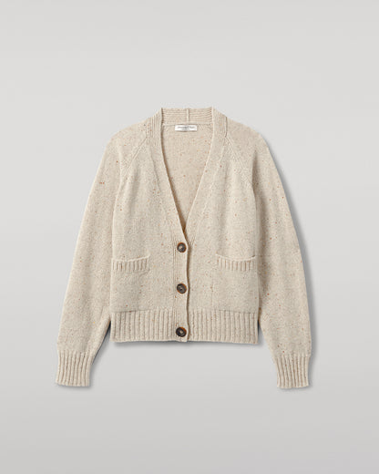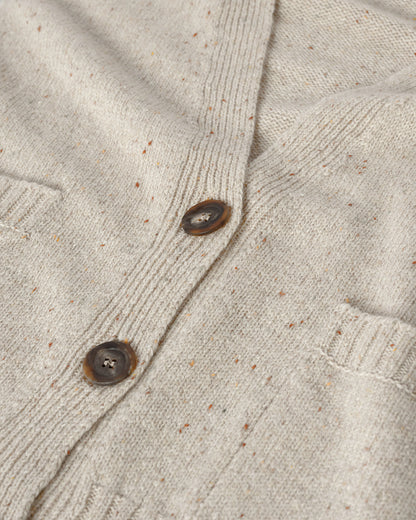 Part of our Donegal collection, this classic v-neck cardigan is knitted in our Hawick Mill from 100% Donegal cashmere; a super soft yarn, carefully crafted with contrasting 'neps' sprinkled into the manufacturing process, resulting in surface interest and a nod to knitwear heritage.