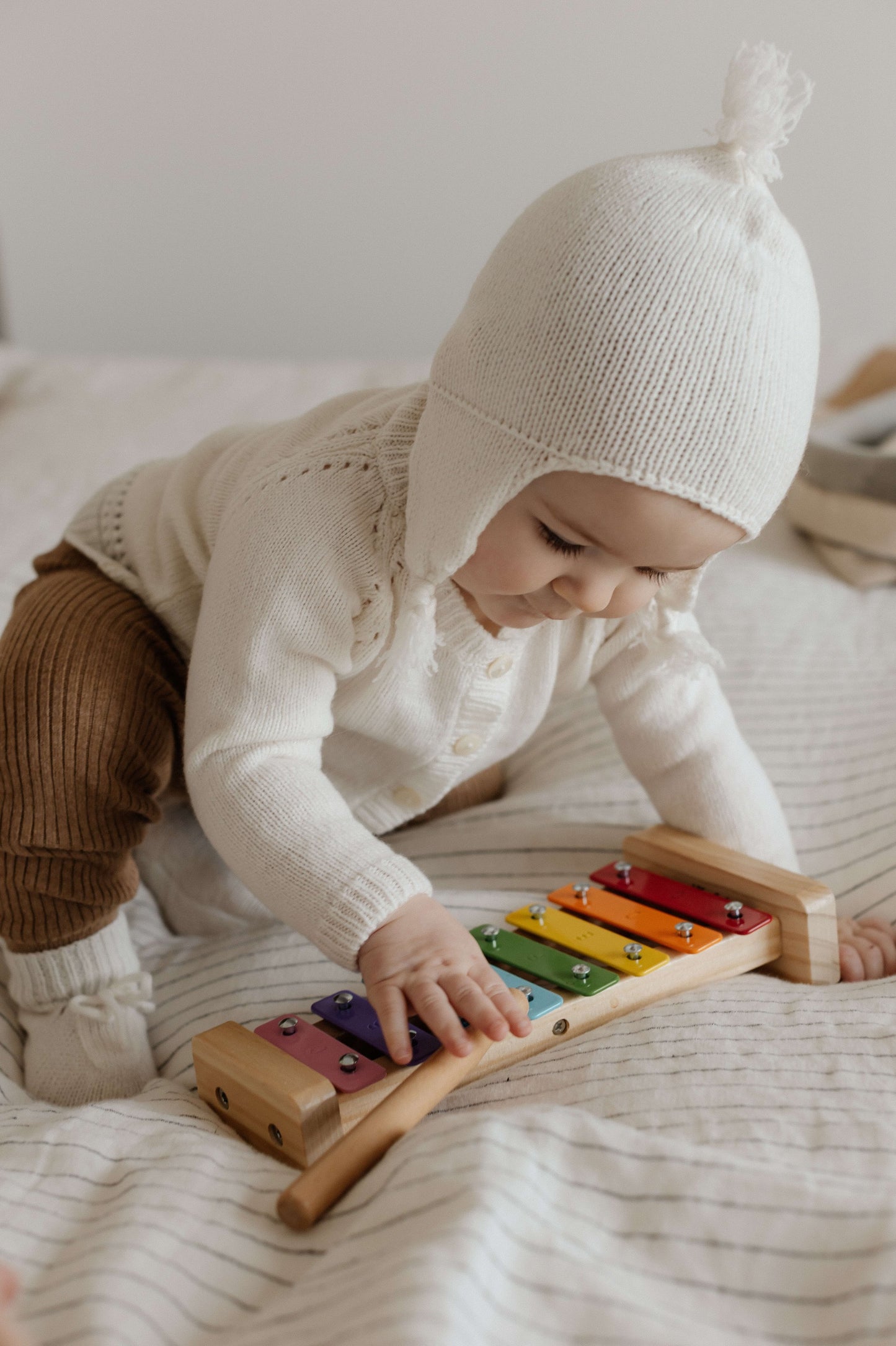 Soft and breathable, this white baby hat is made from the finest Scottish cashmere - perfect for delicate skin and cooler days. It features a classic shape with a ribbed brim and a playful tassel for a snug, comfortable fit.