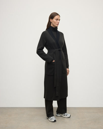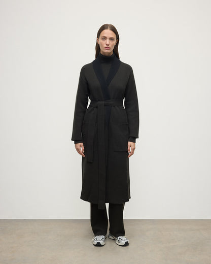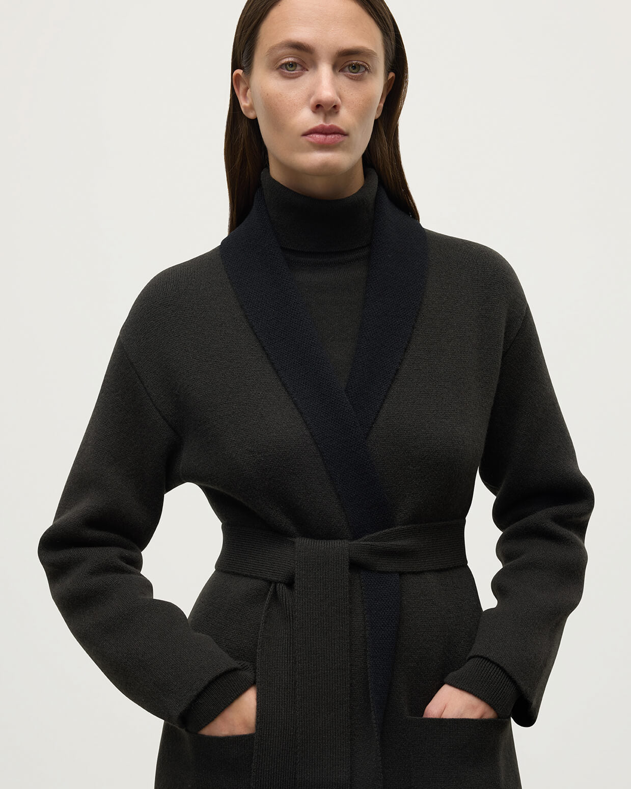 Iron & Black: A clean layering option in double-faced cashmere and merino. Structured, soft and effortless.