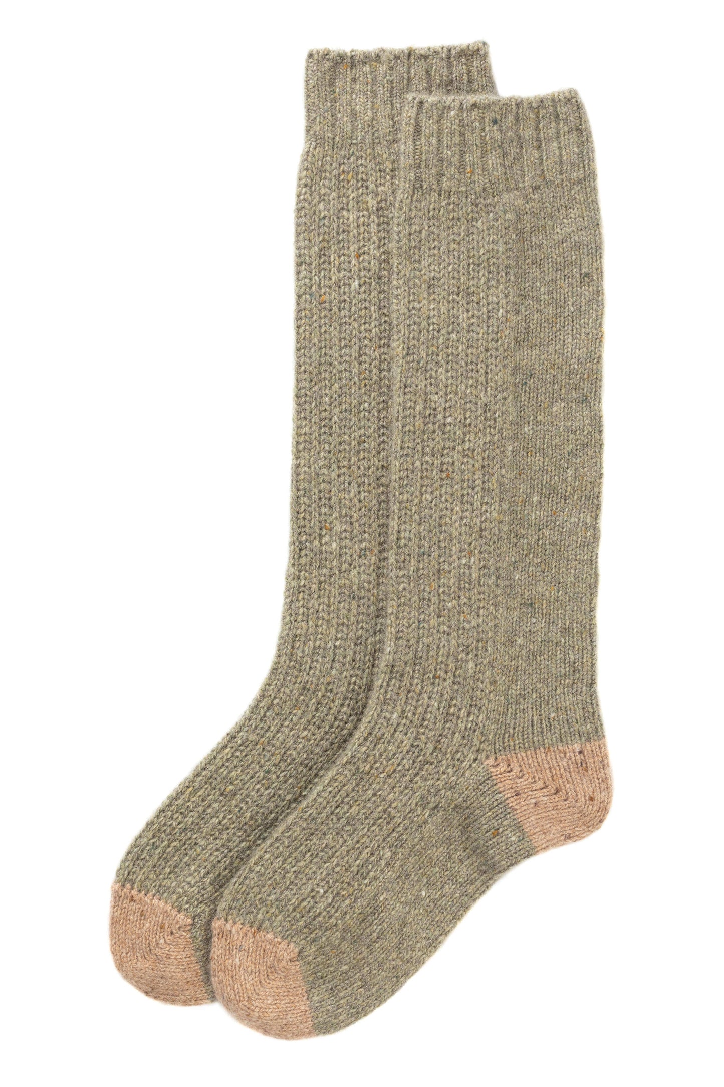 Step up your sock game with our women's cashmere socks, knitted with our exclusive Donegal yarns, in the essential colours of the season, lichen and camel. Made in Scotland, these luxurious bed socks have a contrast toe and heel, and offer unmatched softness and warmth.