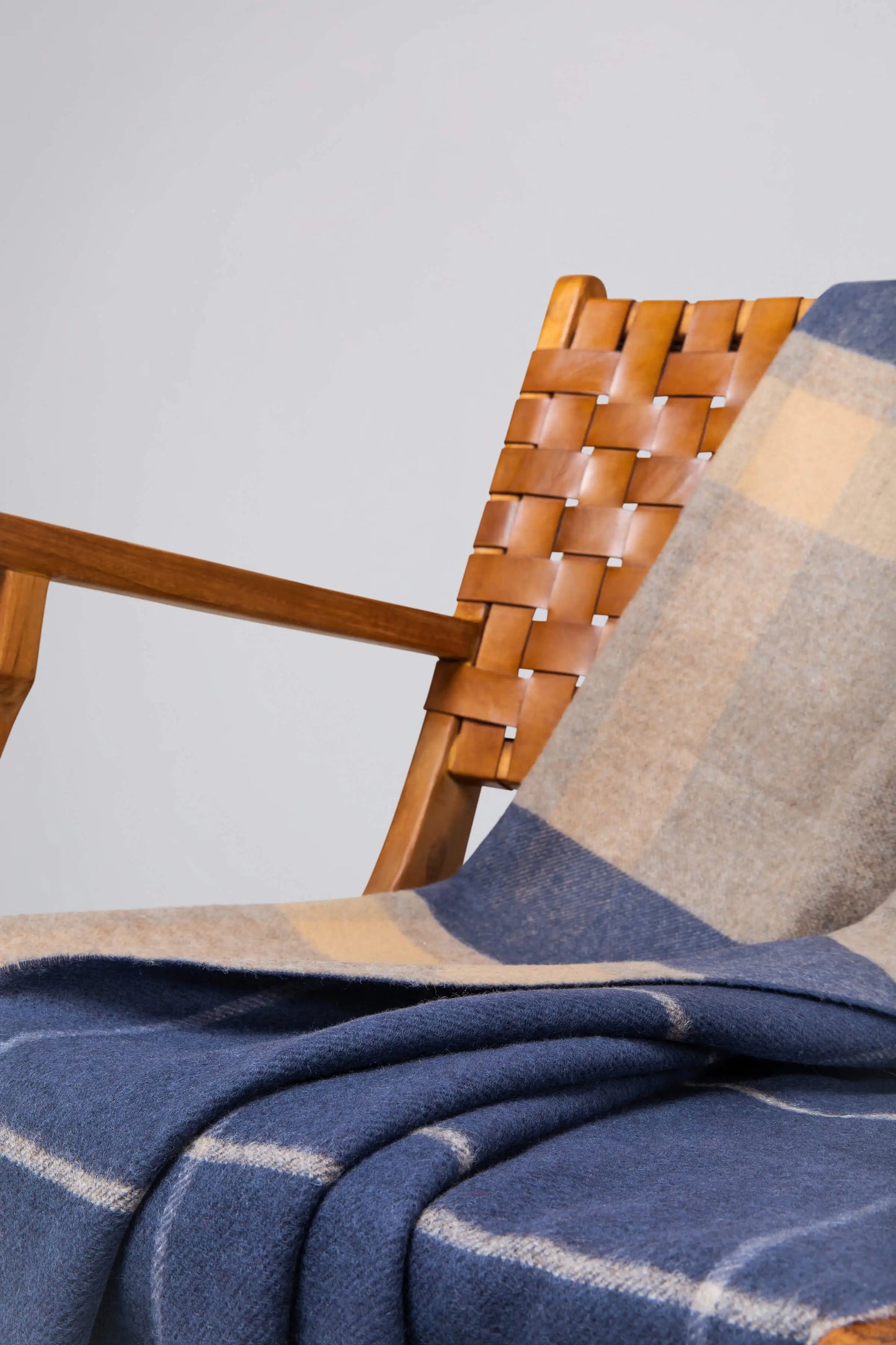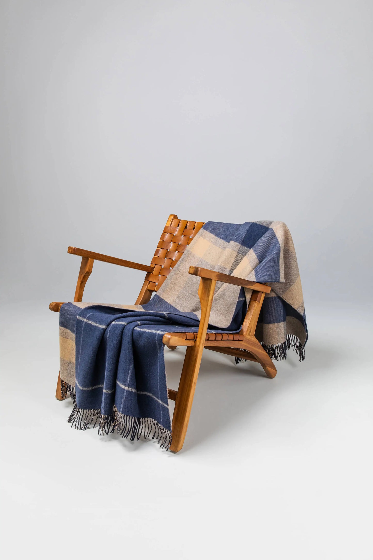 Our Navy Overcheck Double Face Lambswool Throw is made from highest quality lambswool fibres, woven in Elgin, Scotland, offering a traditional and stylish look that mirrors the colours of the Scottish countryside.