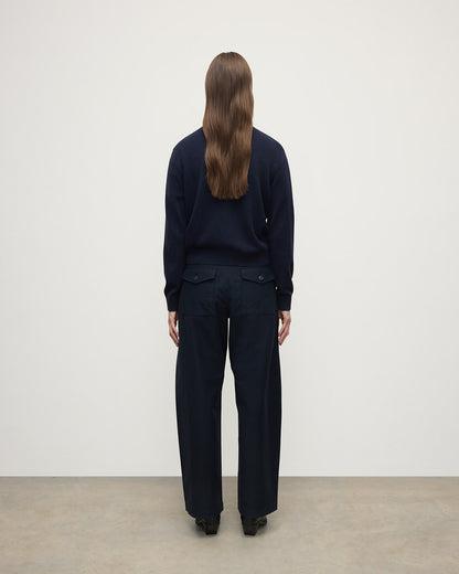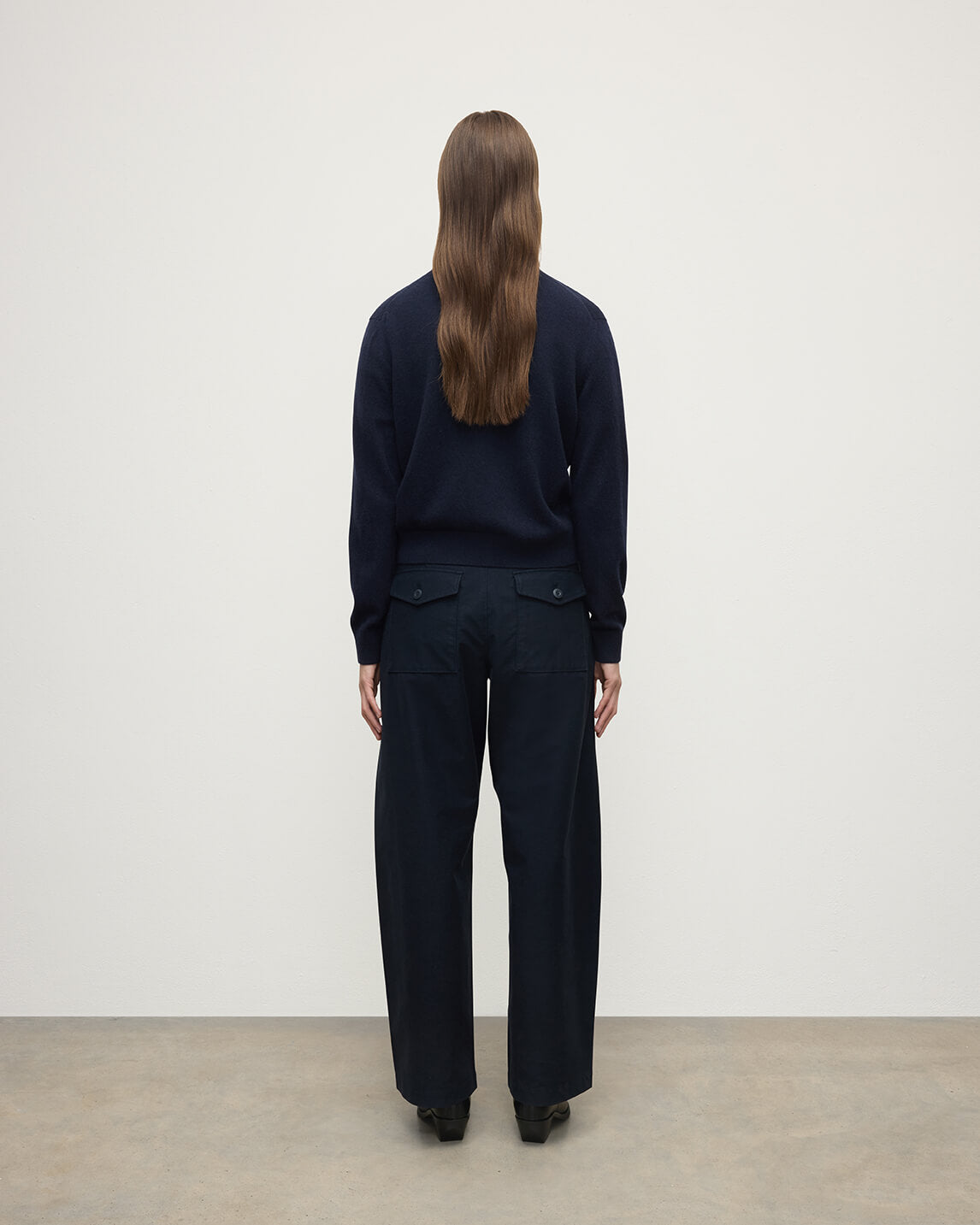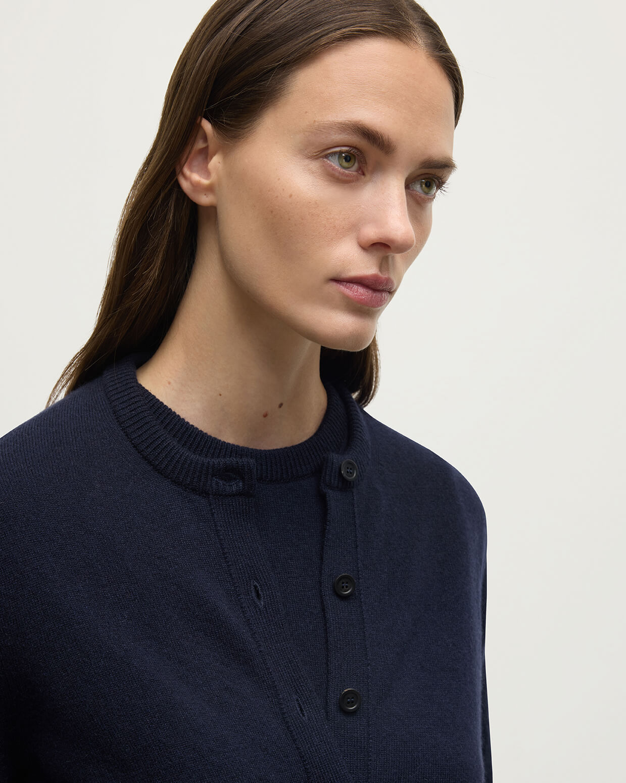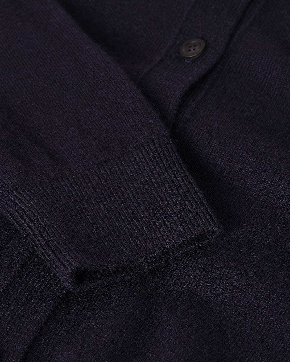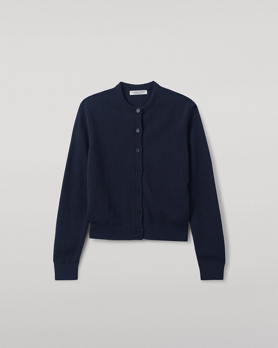 The Women’s Classic Cashmere Cardigan in Dark Navy is a dependable, year-round layer designed to sit neatly at the waistband for easy, everyday styling. It's clean, high crew neckline and simple silhouette make it a reliable piece you can wear across seasons.
